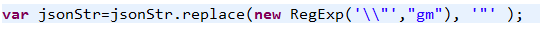需要经过替换后,才能变成标准的JSON字符串格式,从而转化成JSON对象。这里我们需要用JS实现replaceAll的功能,将所有的 ' \\" ' 替换成 ' " ' 。