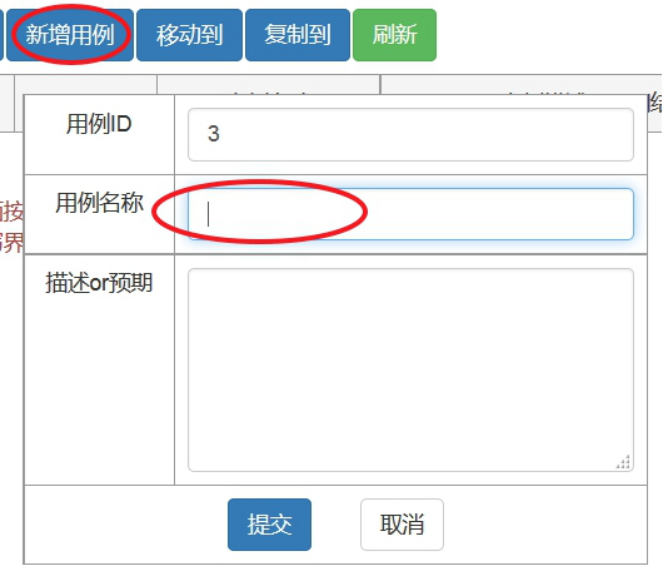 点击新增用例>输入用例名称(用例id、描述等选填)>点击提交或者按Enter完成测试用例编写